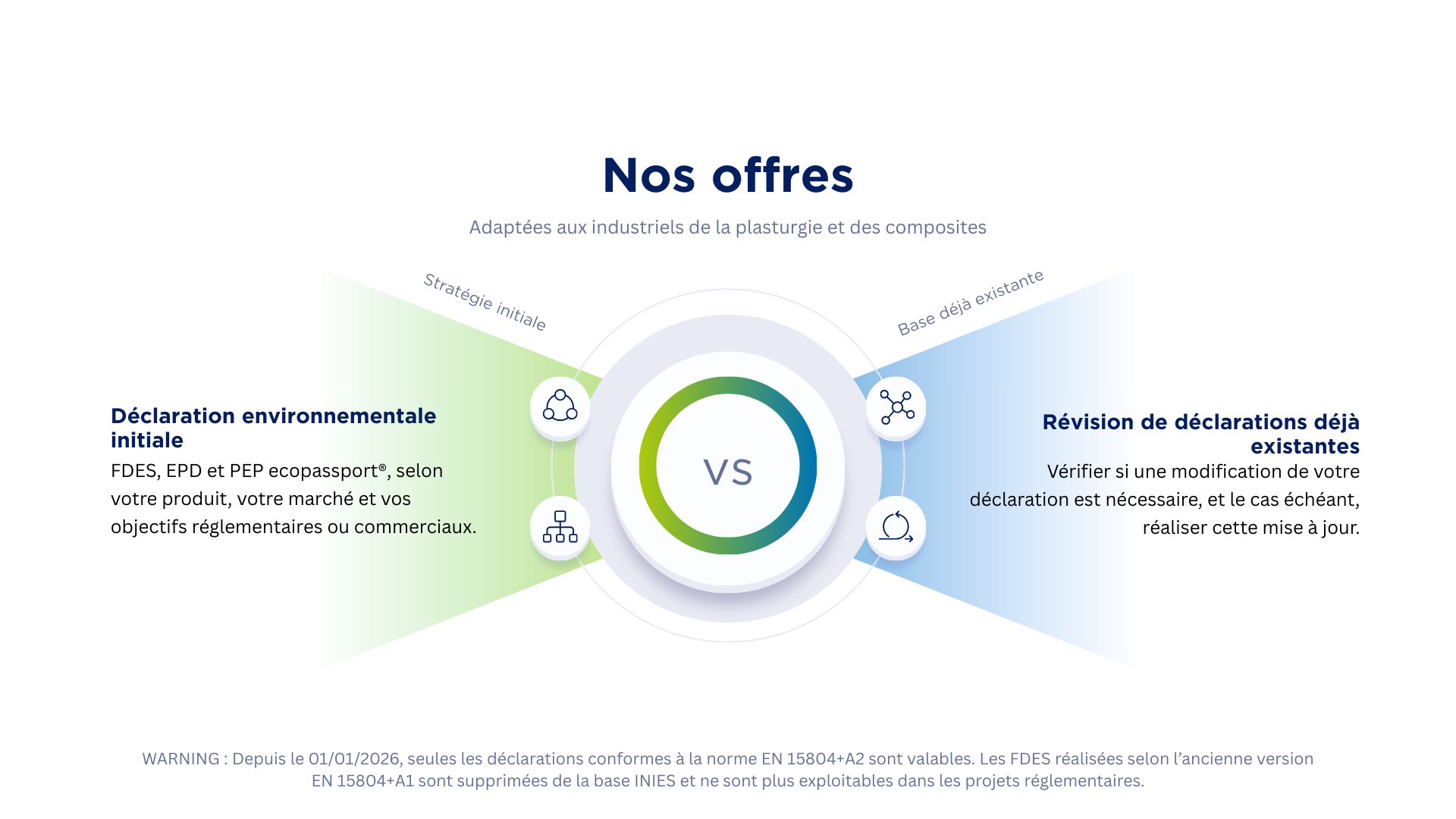📞 Vous souhaitez lancer votre première FDES ou EPD pour un produit stratégique, ou mettre à jour un portefeuille existant de déclarations ?